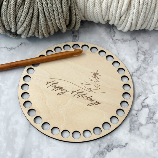 Holiday Engraved 6” Wooden Crochet Base –10mm Holes