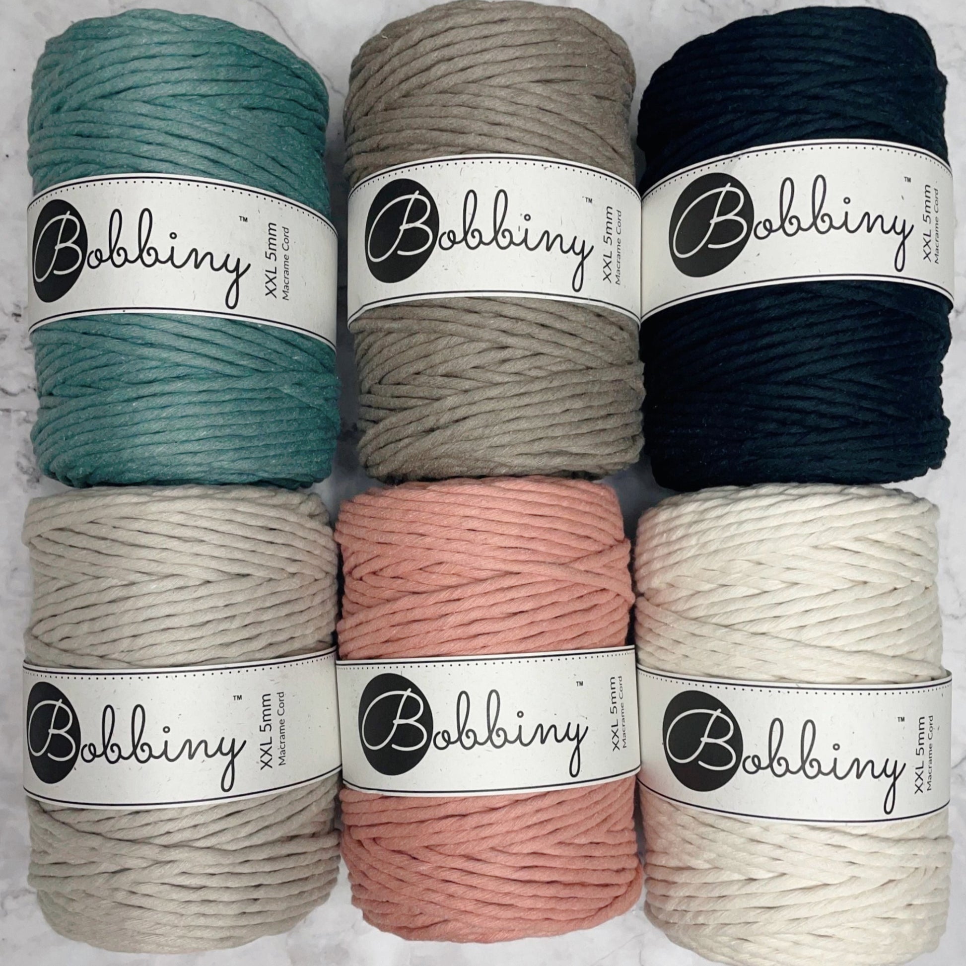 Bobbiny 5mm Macramé Cord is an exceptionally soft product. Thanks to the structure made of delicate cotton, working with it is a pure pleasure. It‘s 112 individual fibers twisted into a single strand 5mm cord that creates a soft but durable product. It‘s size gives you the possibility to create most patterns. It is perfect for macramé and weaving. You can create beautiful wall decorations, but also handbags and jewelry. Combine and mix different colors and you will see what amazing effects you can get! If you want to give your work a boho effect, comb the ends, and you will get fluffy fringes that will liven up your creations.