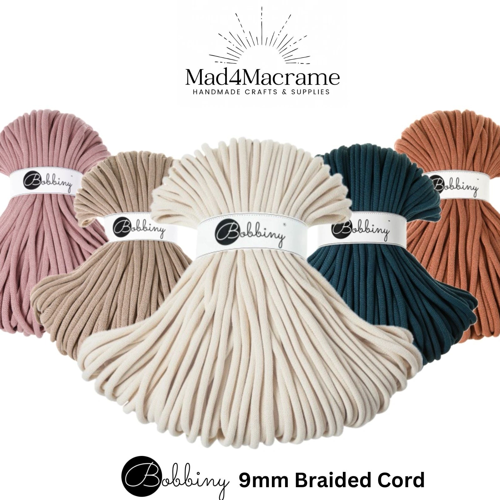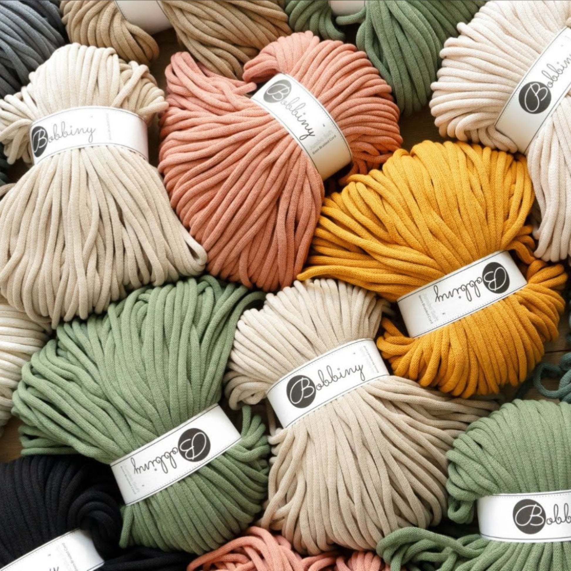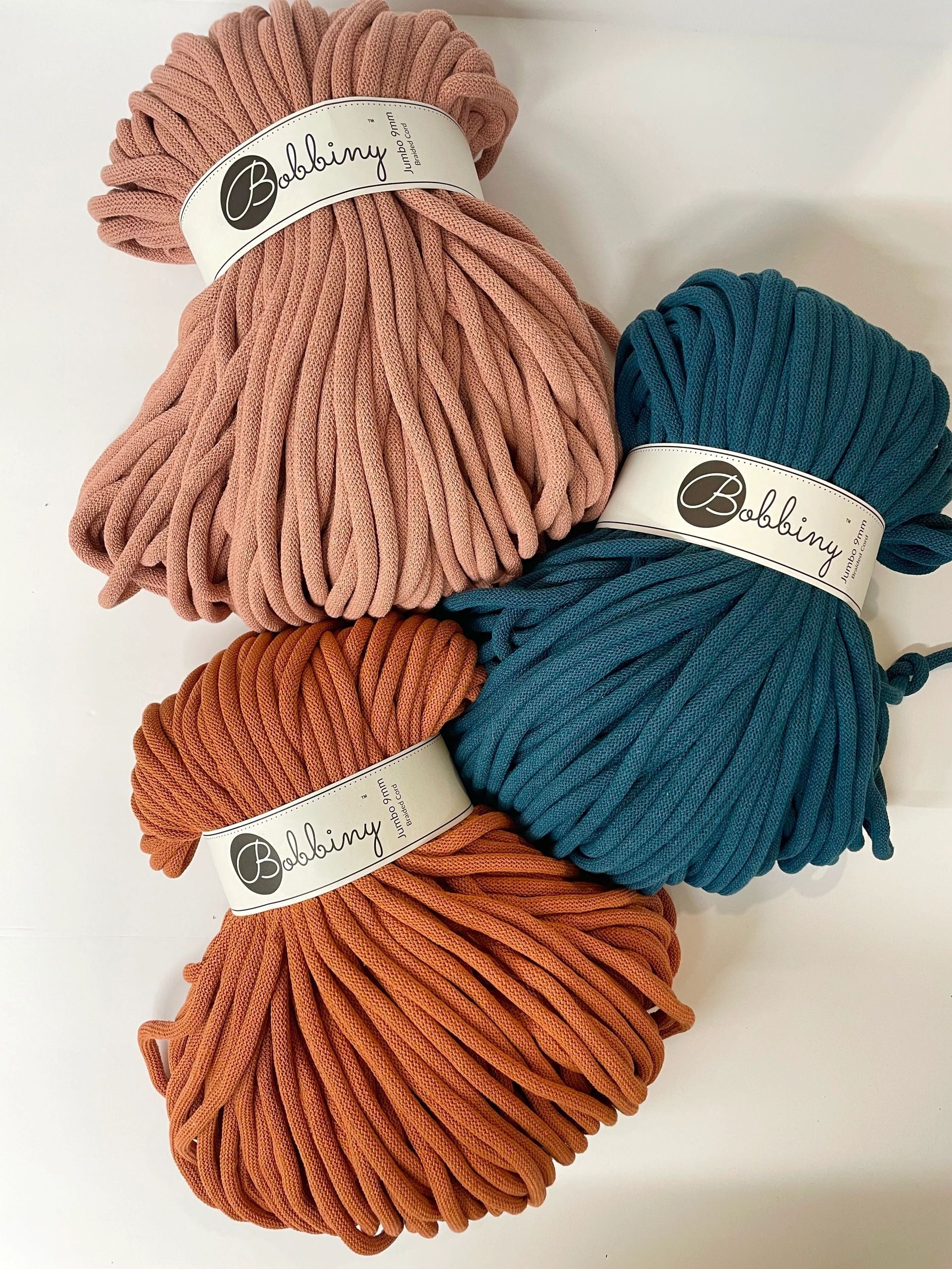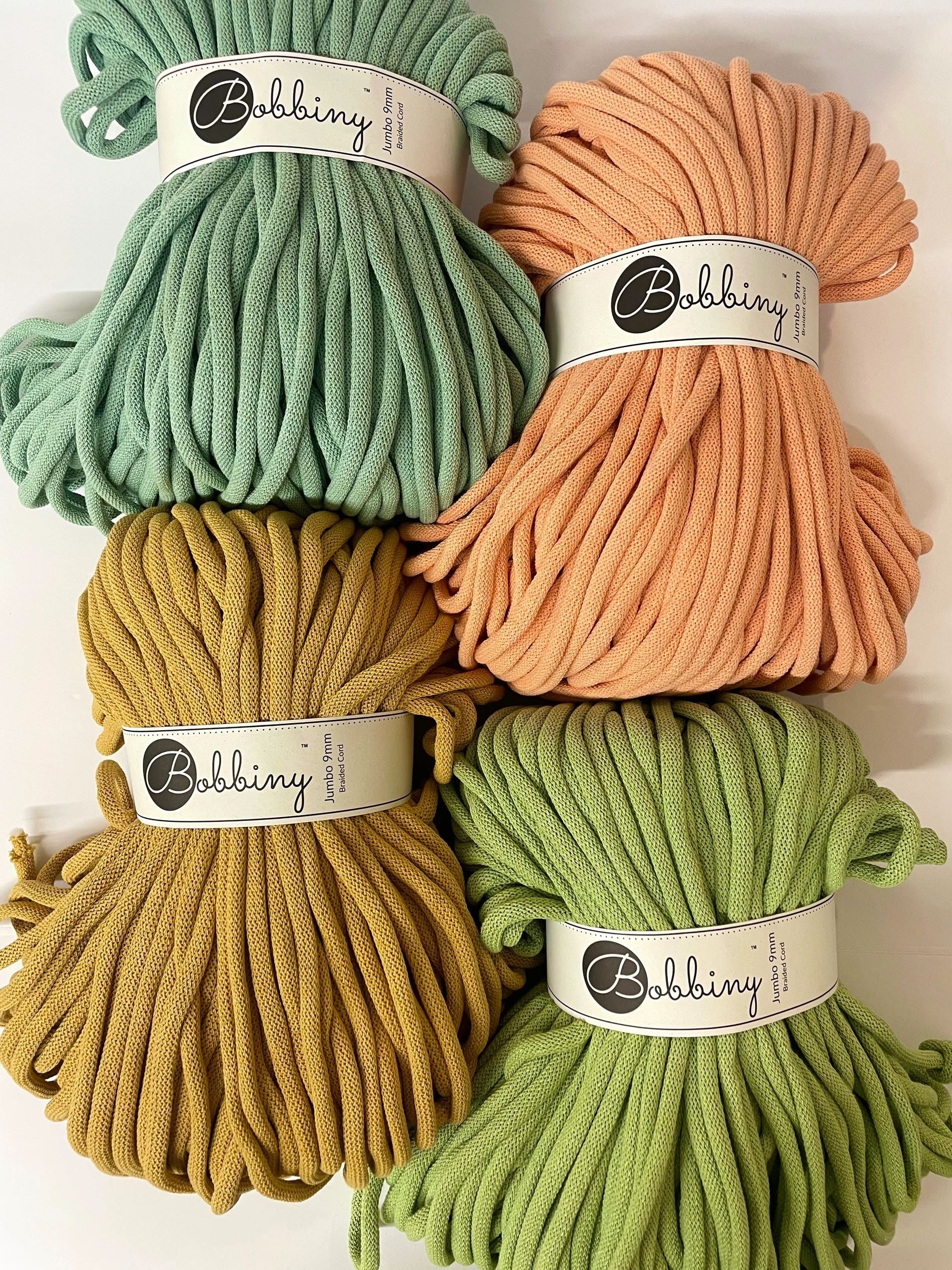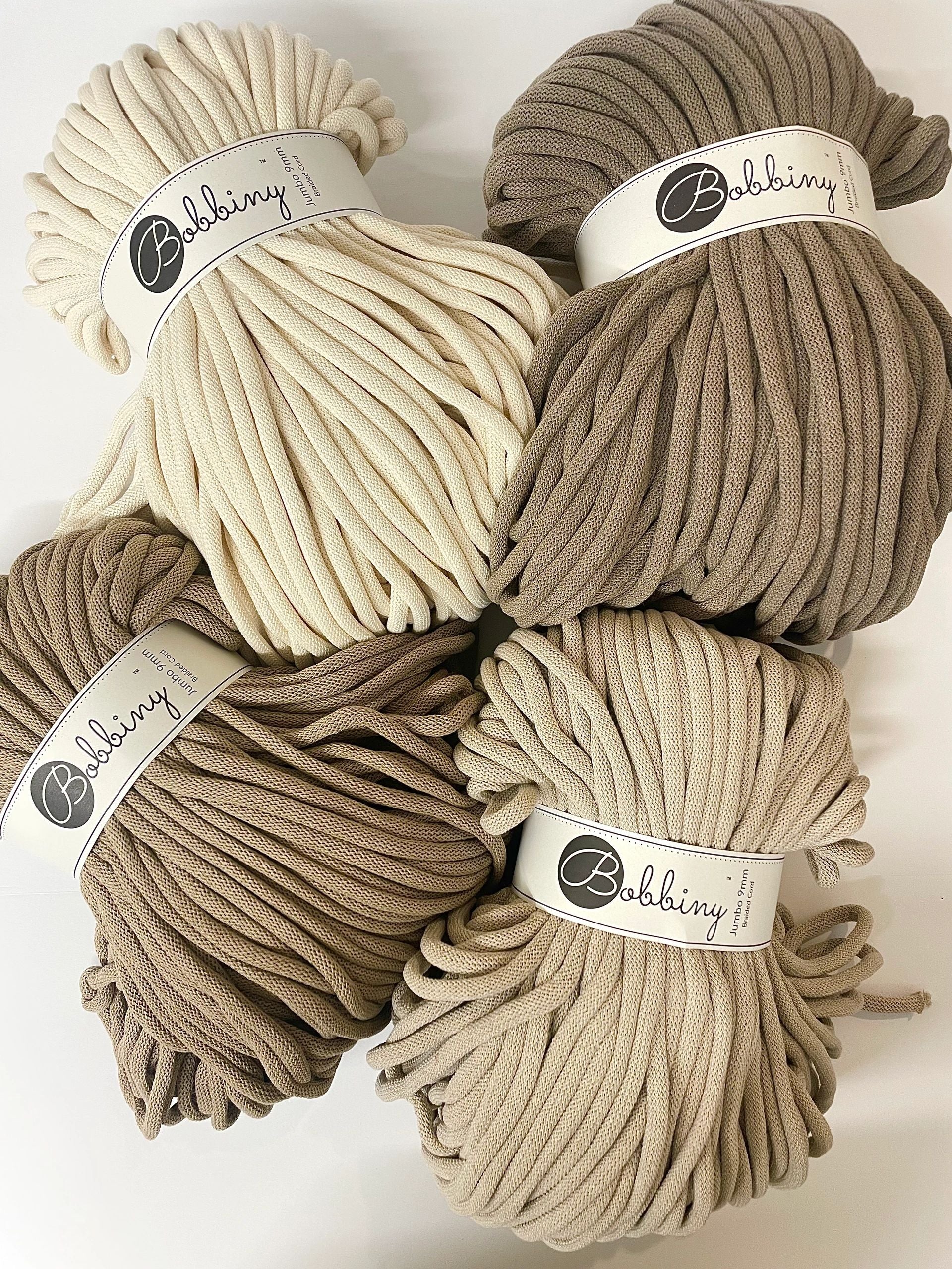 Bobbiny 9mm Braided Bobbiny‘s Jumbo Cotton Cord is a soft, flexible and durable cord. It's perfect alternative for t-shirt yarn. It helps create projects with beautiful jumbo stitches.