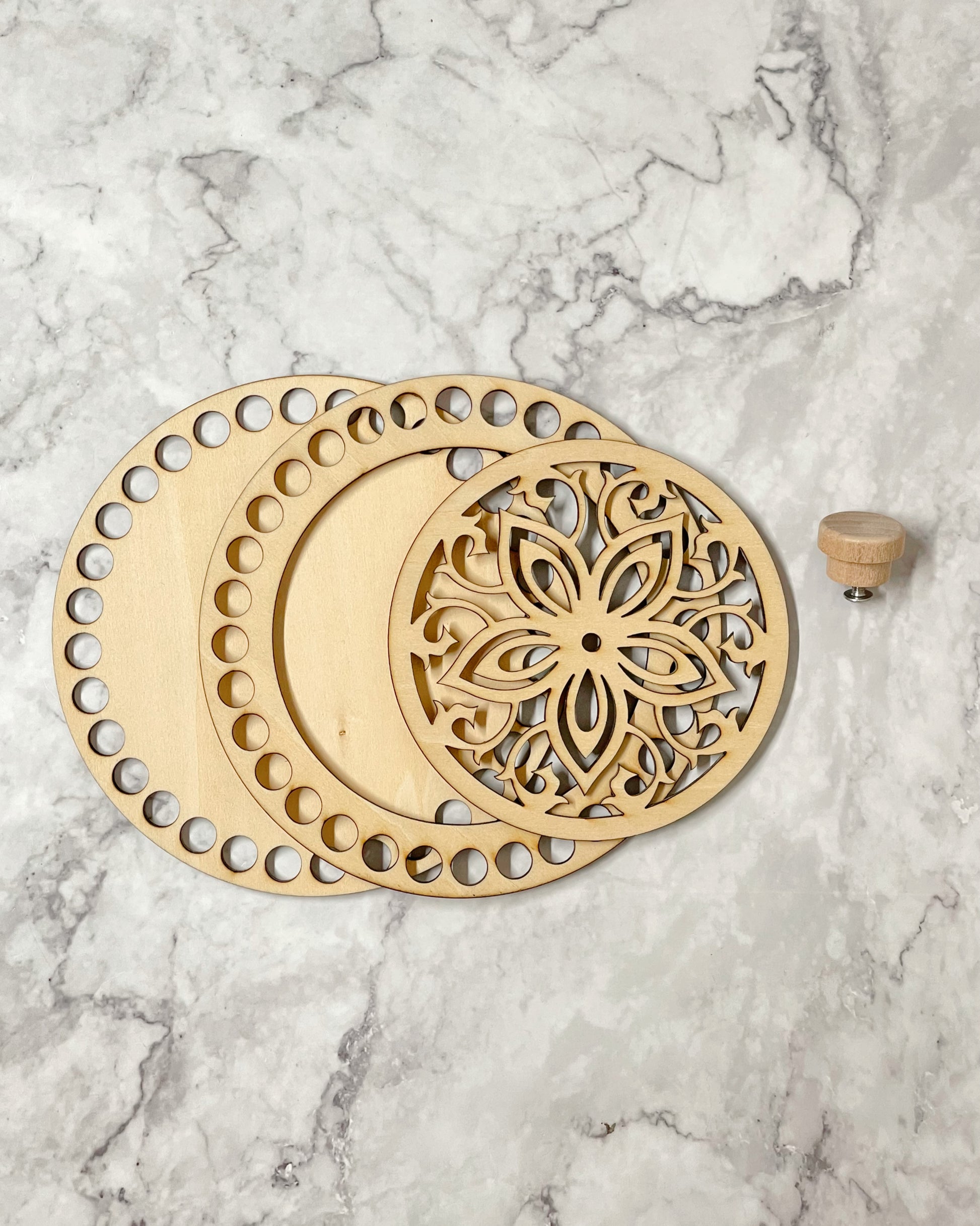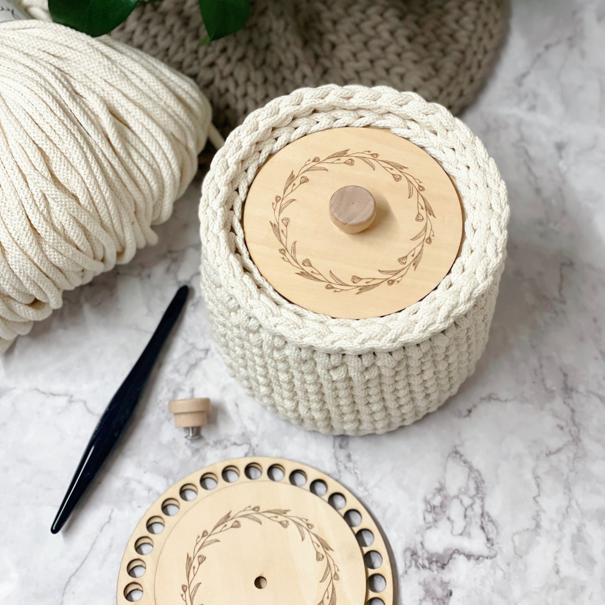 Wooden Crochet Base & Lid Set | 6” Basket Bottom, Top Ring & Lid Included