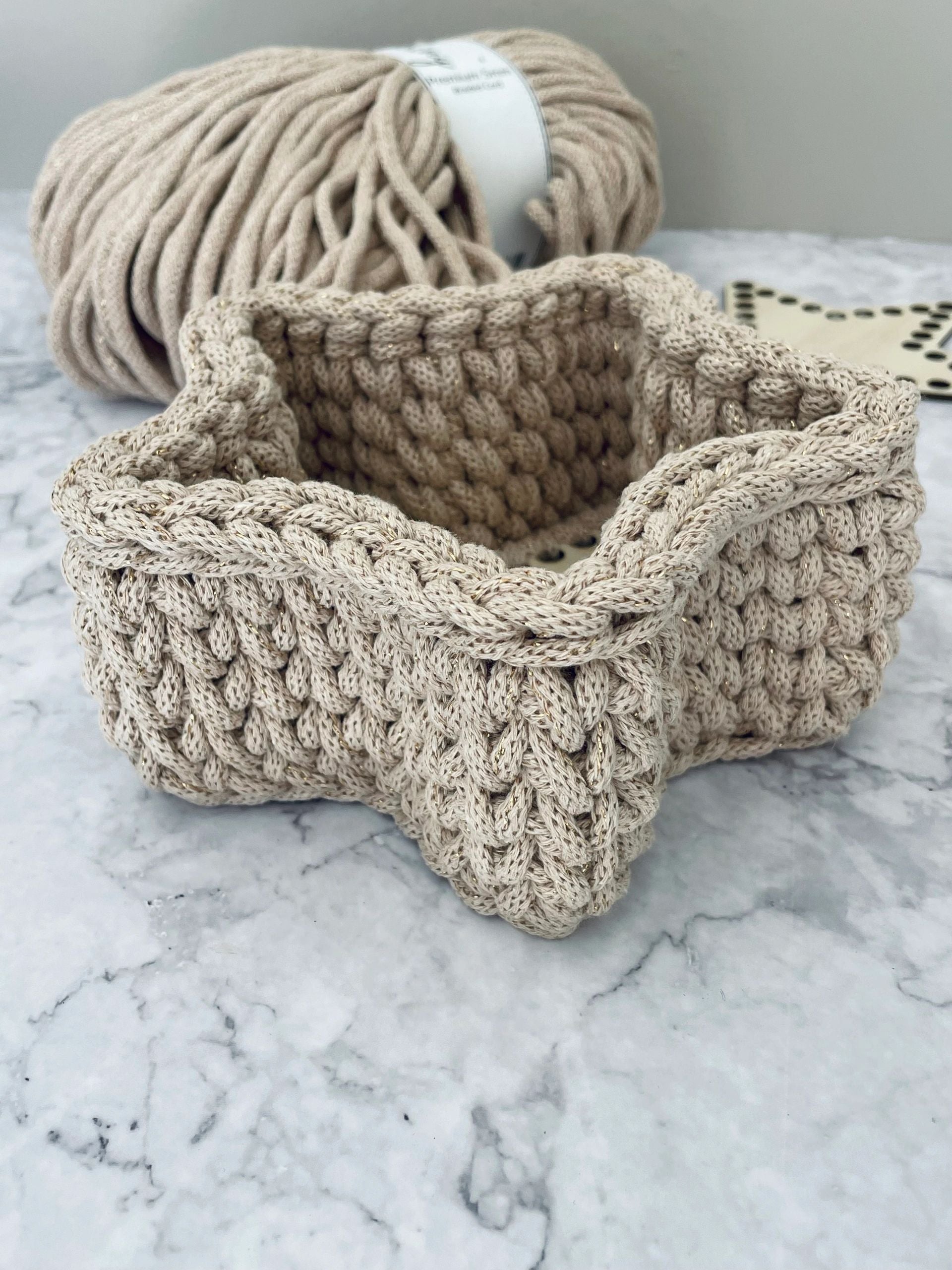 • Pairs nicely with 5mm braided cord or t-shirt yarn.