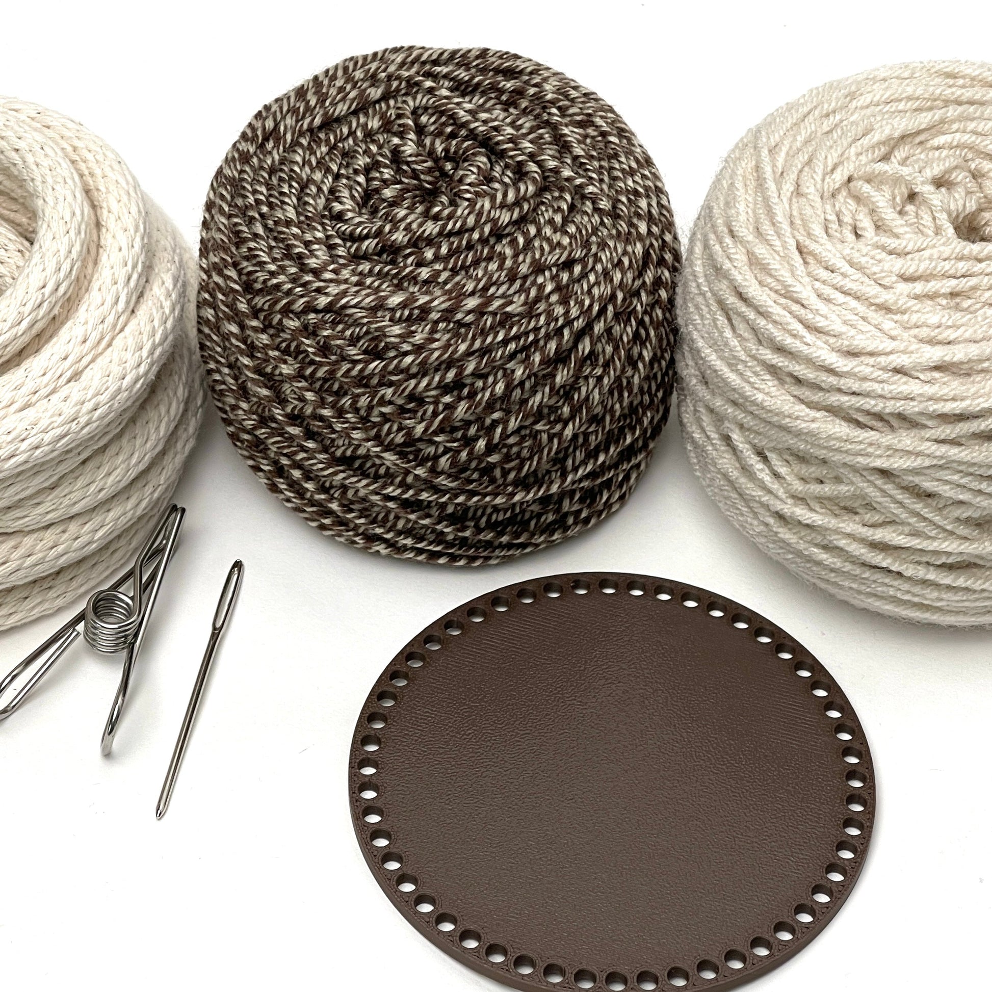 Unleash your creativity with our Yarn Coiled Basket Kit with a Base. Crafted from high-quality yarn, and 3/8-inch cotton filler cord, this kit provides everything you need to create stunning, durable baskets. Follow our easy instructions or let your imagination run wild. I have over 20 full tutorials on YouTube, and you can follow any of them to make a coiled basket. The yarn is mixed materials like cotton, acrylic and bamboo. If you need any help, just email admin@handyknots.com
