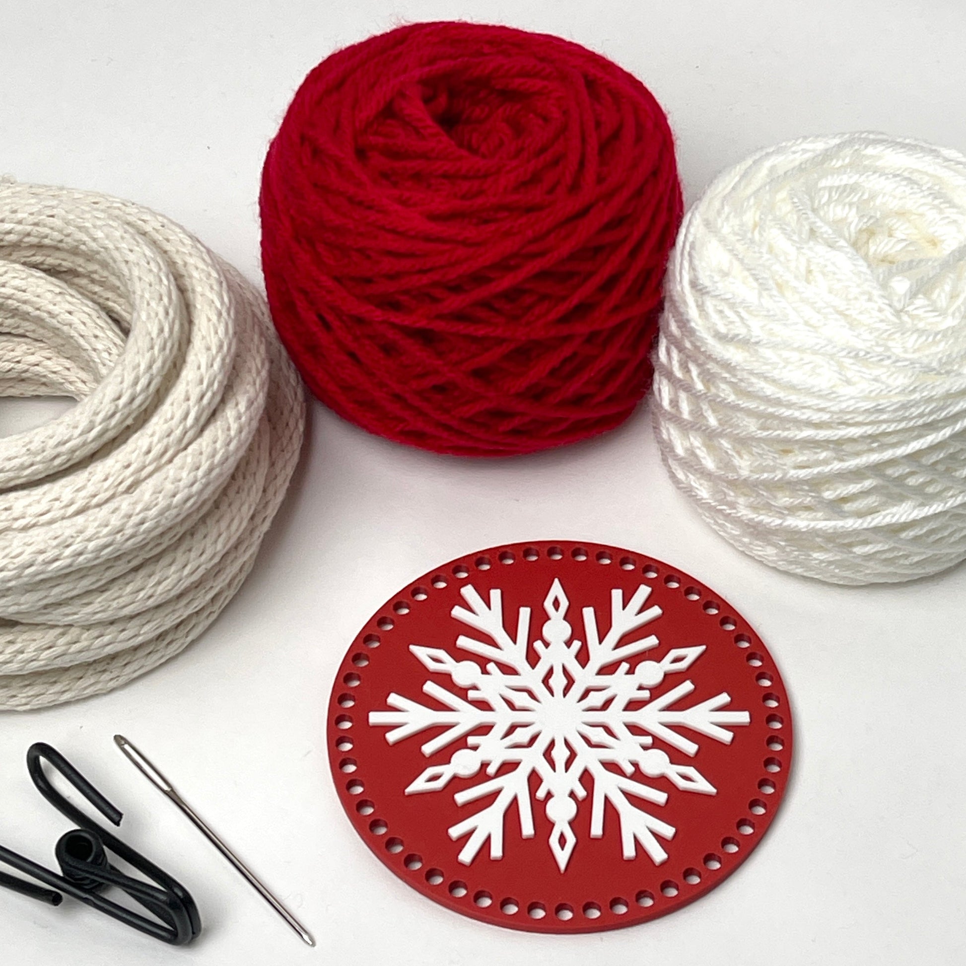 Unleash your creativity with our Yarn Coiled Basket Kit with a Snowflake Base. Crafted from high-quality yarn, and 3/8-inch cotton filler cord, this kit provides everything you need to create stunning, durable baskets. Follow our easy instructions or let your imagination run wild. I have over 20 full tutorials on YouTube, and you can follow any of them to make a coiled basket. The yarn is mixed materials like cotton, acrylic and bamboo. If you need any help, just email admin@handyknots.com